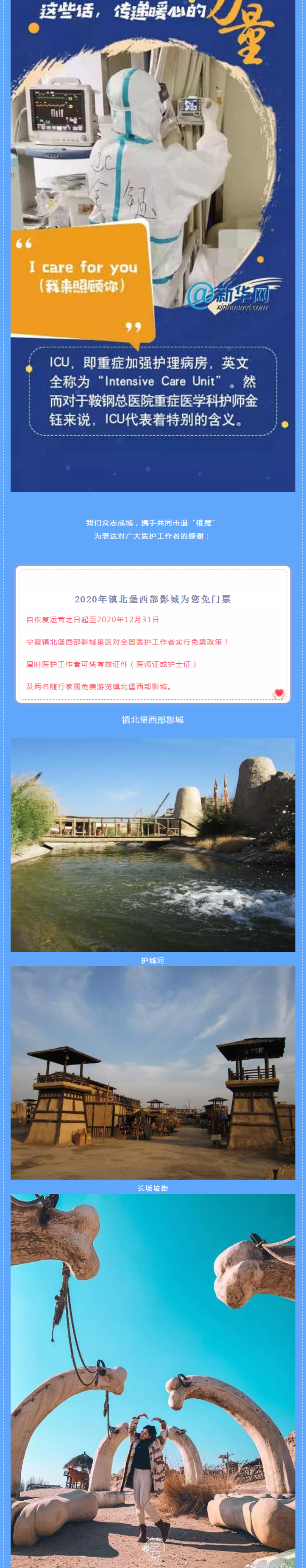 米高猫:致敬逆行的天使们:镇北堡西部影城对全国医护工作者予以免门票政策!