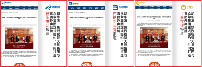 近日,大显集团旗下喜团网CEO胡华清老师与众帮集团方面的贺笑老师等正式签约并达成战略合作,共同打造喜团外卖全国标杆城市一百万元落地执行方案。这标志着,由这两家企业共同开发的喜团外卖品牌即将开启全国招商加盟序幕。