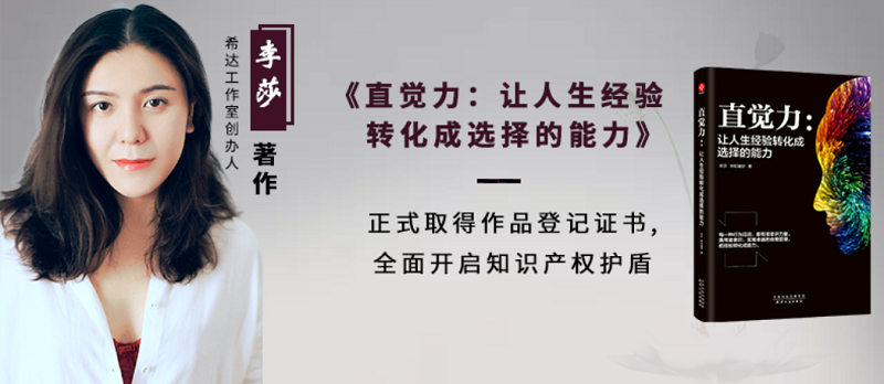 在出版的众多书籍中,《直觉力:让人生经验转化成选择的能力》作为一本有份量的文字作品,由李莎老师申请,经中国版权保护中心审核,经过严格把关,于2020年1月10日登记,最终出具《作品登记证书》,登记号:国作登字-2020-A-00960293。