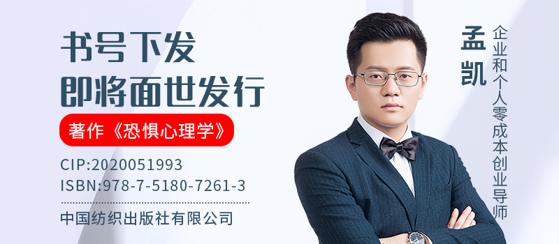 由企业和个人零成本创业导师孟凯老师执笔,委托出书大师网全权代理策划出版的《恐惧心理学》一书便对恐惧和人性的特点做了深入的阐释和分析。在这本著作中,孟凯老师用深入浅出的案列告诉广大读者:无所畏惧地活着,是让自己远离畏惧的唯一途径。