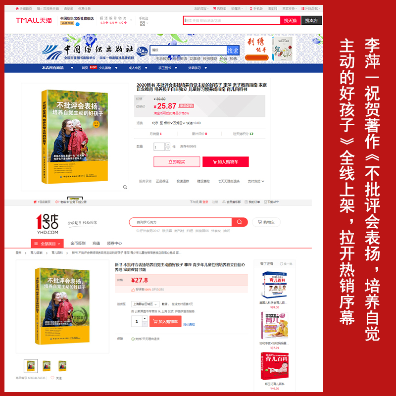 近日,由中国纺织出版社出版、李萍老师创作的著作《不批评会表扬,培养自觉主动的好孩子》,全线上架京东、当当等图书销售渠道,拉开了热销的序幕。