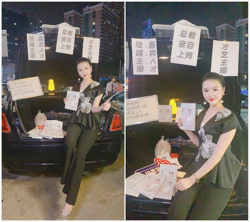 在华灯初上繁华热闹的街头巷口,婷婷老师亲自上阵,全程直播售卖自己的新书《我的人生我做主》。选好位置后,打开劳斯莱斯豪车的后备箱,一本本码放整齐的新书映入眼帘,婷婷老师柔美的声音环绕四周,引得路人纷纷驻足观看,大家拿起书籍仔细翻阅,不时抬头与婷婷老师攀谈,看了书中的介绍并了解婷婷老师的经历后,很多人当场购书表示回家后详读。