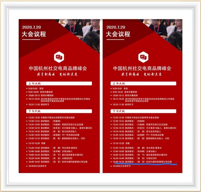 杭州九曜风险管理公司总裁海笑老师,将作为特邀演讲嘉宾与阿里巴巴、云集、蘑菇街、贝贝集团、斑马会等社交电商领域巨头品牌创始人、CEO共同探讨社交电商的合规运营与风险管理,如何通过法律手段提升品牌可持续发展。