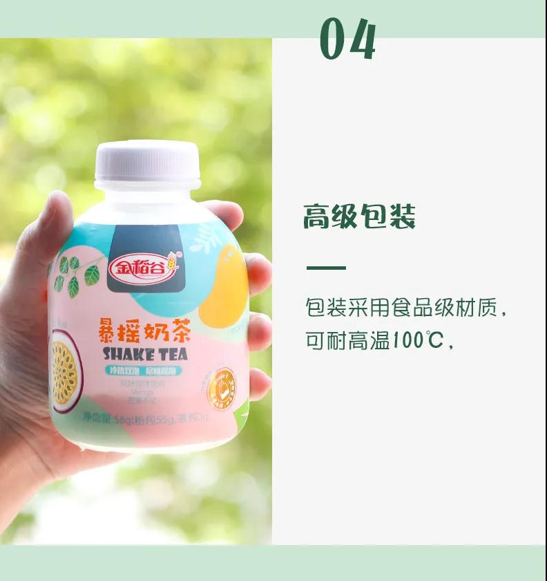 并且金稻谷罐装爆摇奶茶是冷热双泡系列,四季皆宜,冷水冲泡后,夏天饮用是很清爽的感觉,热水冲泡,在寒冷的冬天可以暖身暖心。采用PPF高温塑料瓶,食品级材质,不惧高温。圆润瓶身,手持方便,摇晃均衡味更佳。