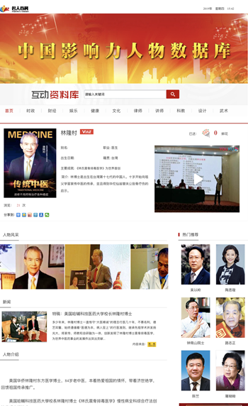 《林氏震骨排毒医学》创始发明宗師林隆村博士,在美国开业30多年,拯救了五万多美国人遭受慢性疑难雜症的煎熬而完全康复。得到美国患者的爱戴。替中国人在美国争取了下列荣誉名号:
