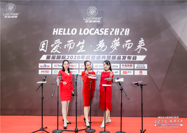 时尚男模引领穿着优雅红色礼服的经销商走上盛典红毯,在活动背景墙合影留念并接受主流媒体采访。