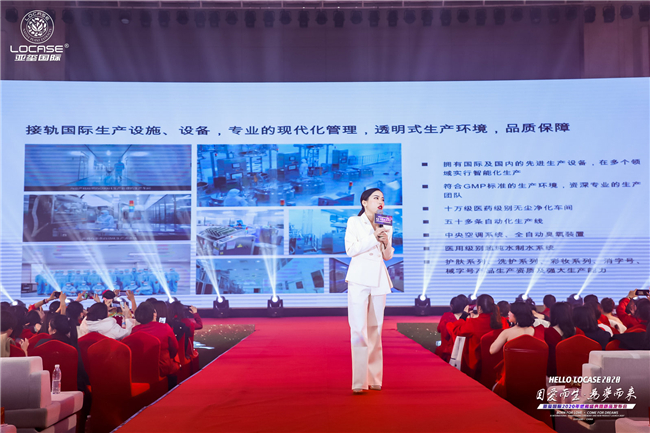 在发布会现场,亚玺产品经理通过PPT从产品市场需求、产品研发技术、产品成分功效三个方面向在场嘉宾介绍零距美鱼子酱焕耀臻萃系列奢养套装。