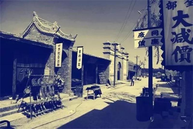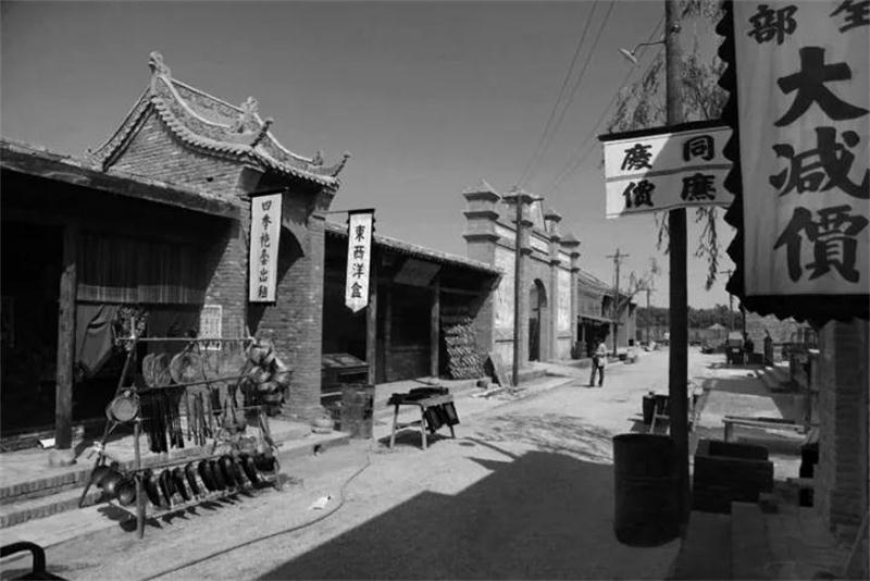 前店临街,两侧摆设长条形盛粮食的木斗,供进城卖粮食的农民使用。