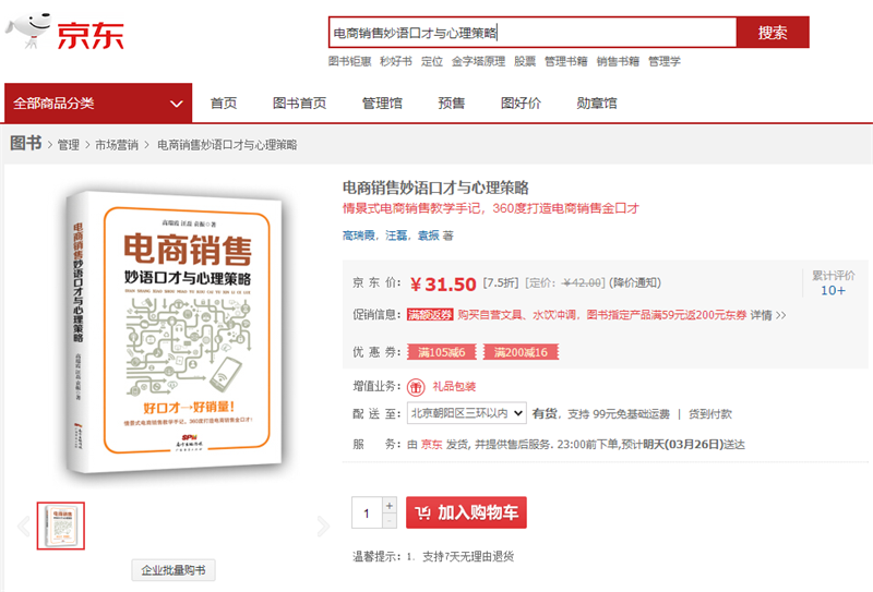 由出书大师策划出版,汪磊著作的《电商销售-妙语口才与心理策略》巧妙地分析买家的心理,发现运用良好的口才可以更好地达到电商销售的目的。此书案列专业丰富,十分精辟,条理清晰,非常适合想要加入电商行业并大展拳脚的人阅读。可以为想要扩大盈利者提供一定的思路和想法。这本书在天猫、京东、亚马逊、当当、新华书店五大平台全渠道上线,销量火爆,受到广大读者的喜爱,凭着庞大的粉丝基础,迅速地登上同类书籍畅销书榜单。
