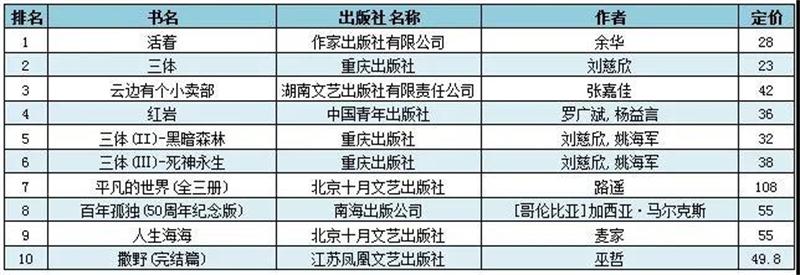附表3:非虚构榜前10名