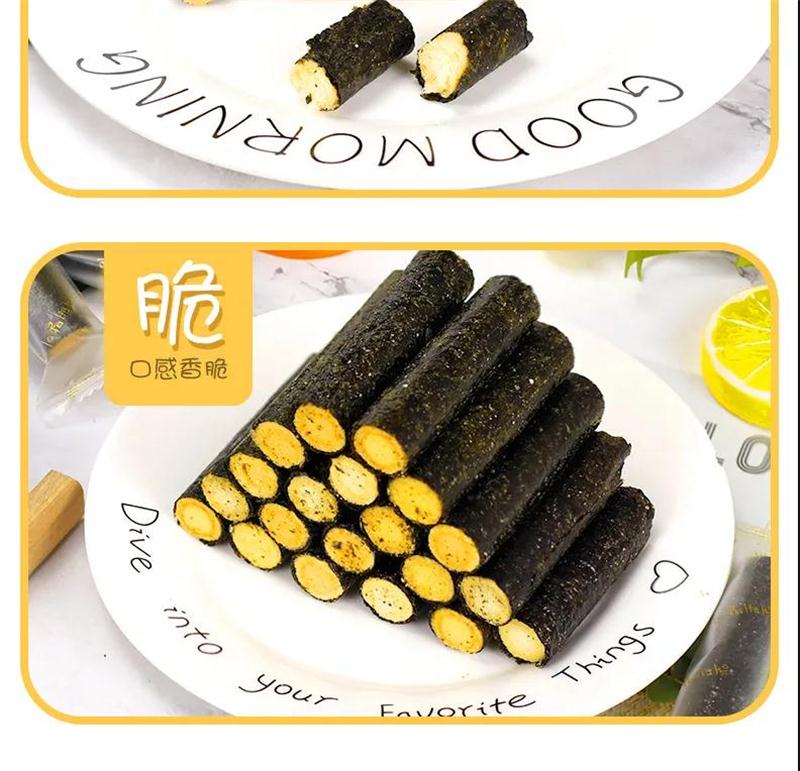 传统古法制作+现代先进的生产工艺相结合烘烤出来的海苔卷质地薄脆松香四溢不油腻卷曲烘烤工艺,锁住每一支的鲜香