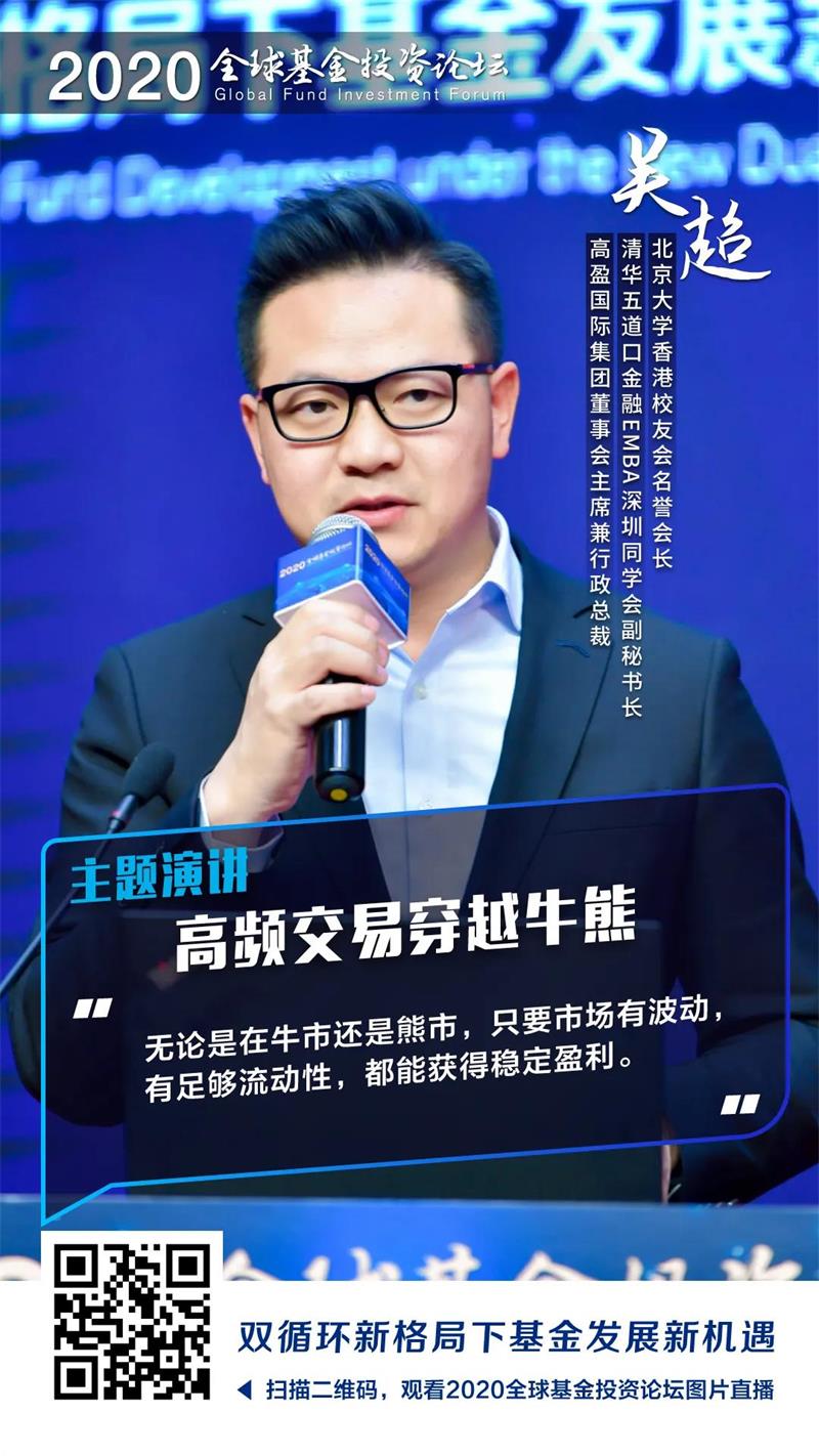 以“双循环新格局下基金发展新机遇”为主题的2020全球基金投资论坛于11月8日在北京成功举办。高盈金融、高盈科技、量盈基金董事长吴超发表了题为“高频交易穿越牛熊”的主题演讲。他表示,新冠肺炎疫情以来,全球从事高频交易的业务主体无论是交易机构、服务商、数据提供商还是设备提供商都有更好的盈利。他介绍,因为新冠肺炎疫情给市场带来巨大的波动,波动就是高频交易方式最大的盈利。从长期机会来看,因为国内交易机构以及投资者数量多,存在着大量机会,国内市场未来比国际市场有更多挖掘空间。他建议,要想获得市场就应该对高频交易提前开始研究、进行测试。因为获得高频交易的高收益不是一朝一夕的,需要长期训练、长期练兵。