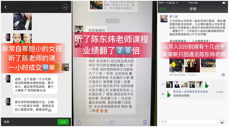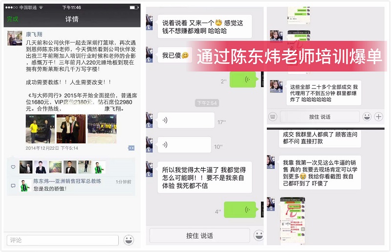 学习陈东炜老师的课程,手把手教你快速成为销售冠军;让陌生客户在最短的时间喜欢你相信你,并且主动合作;通过一个支点帮助团队快速裂变撬动更大的市场;通过六脉神剑,不仅卖出产品更卖出市场;使个人品牌形象和价值快速提升十倍以上,吸引更多高层次的客户及代理……