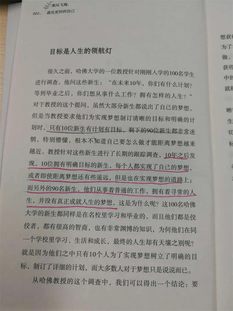 哈佛大学的学生,10%的人有目标,10年后,大多数人都实现了梦想。