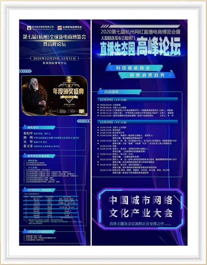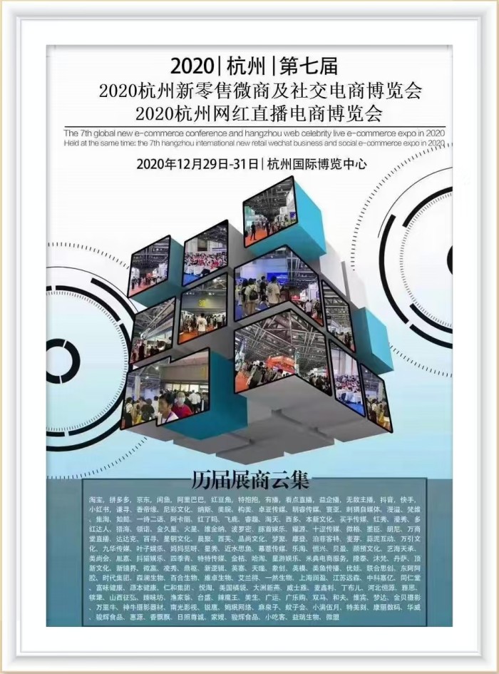 2020第七届(杭州)全球新电商博览会暨高峰论坛,将于2020年12月29日至12月31日在电商之都杭州国际博览中心隆重召开。本次大会将围绕新电商、新零售、新渠道、新风口为主题,聚焦中国新消费窗口红利期带来的数字创新、渠道变革,全面解读数字化、直播平台和社群经济与新零售、新电商的整合趋势,致力于打造电商、直播电商、社交电商、微商、社群/社区电商等全产业链的电商盛会。
