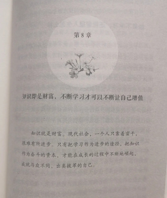 书中的第八个章节,“知识即是财富,不断学习才可以不断让自己增值”。突然像是给我一闷棍一样把我打醒,对啊,不知道怎样去做就去学习吧!