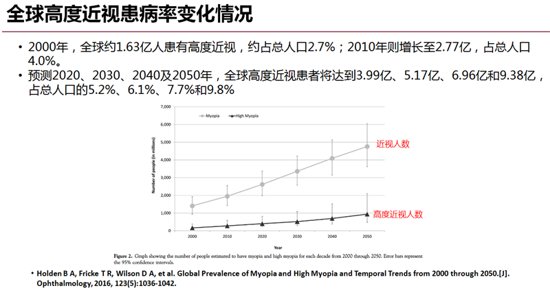 陈楠华:近视问题并不简单,不是一个戴眼镜就能看清的问题。我们要知道,近视是不能治愈的,它的度数还会不断增长,尤其在儿童青少年时期,随着用眼时间越来越长,每年的近视度数都会不断增长。当度数达到一定程度时,人的眼轴就会发生变化,从而引起一系列的眼底变化,导致患白内障、青光眼的机率更大,还可能引起各种斜视病症。