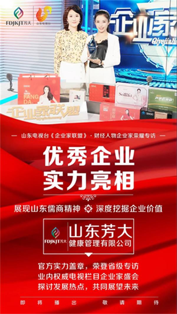 近日,芳大健康董事长吴小芳女士接受了山东电视台推出的财经人物访谈类电视节目——《企业家联盟》荣耀专访,取得圆满成功。