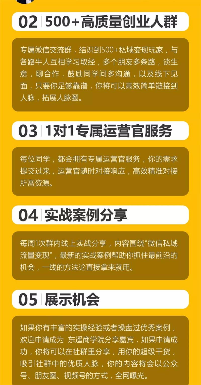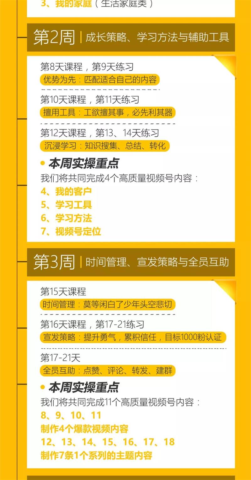 它涵盖了当下最火的视频号变现、个人品牌变现、企业社交化运营、社群运营、微信好友管理、视频制作与剪辑、朋友圈节奏宣发,7大版块。你再也不用去找7位导师去被7种思想影响了,这样会走火入魔,也不用再去报数十门课程,花上十几万的学费,甚至再去消耗3至5年时间。