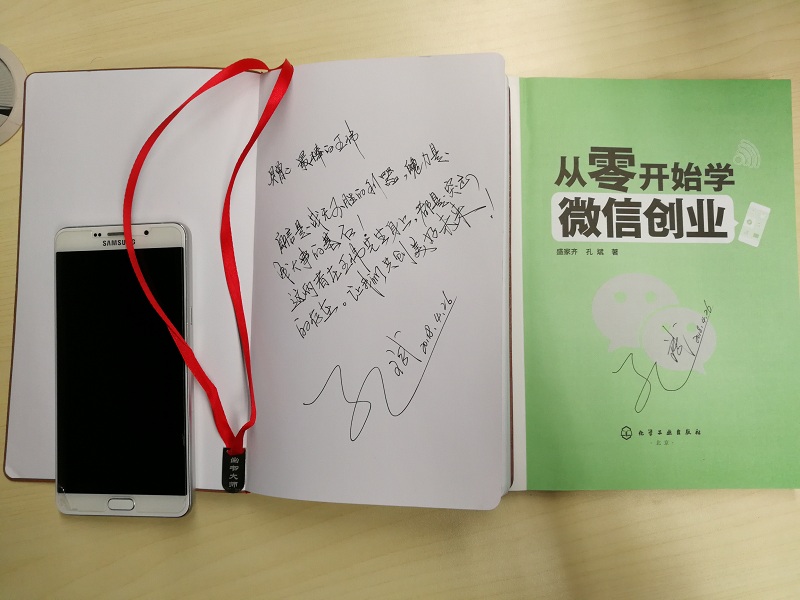 在过去的时间里,王伟凭借出色的团队管理技巧和个人领导能力,带领其团队取得了不菲的工作成绩,王伟积极进取、踏实肯干,对待本职工作,认真负责,兢兢业业,时刻把公司利益放在心中。此次评选中,集团董事长、出书大师CEO孔斌先生为其颁发亲笔签名著作《从零开始学微信营销》和奖品,并亲自提笔寄语:“自信是战无不胜的利器,魄力是成大事的基石。显然此二者在王伟先生身上都是突出的存在”,鼓励王伟团队在今后的日子里工作更加认真努力,继续为公司发光发热,和孔斌先生一起创造美好的未来。
