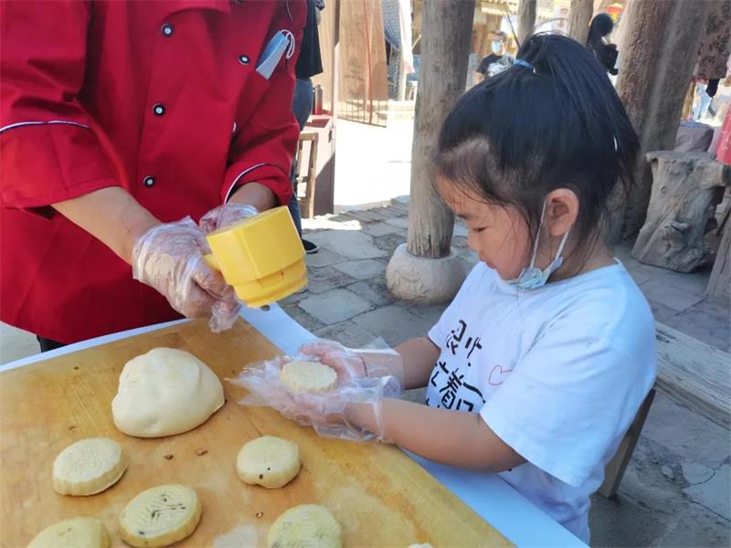 在这个中秋佳节,镇北堡西部影城主打民俗文化+影视休闲游。清城街道小广场设立了制做月饼体验区,游客们不但可以免费在这里亲手做月饼,还可以现场与家人、朋友一同品尝月饼。对于很多年长的游客来说,做月饼已然触动了脑海里最美好的记忆。一位游客说:小时候,每当中秋节,奶奶就会带领着全家一起蒸月饼,那时候的月饼可比现在要大上20-30倍,蒸好的月饼要放在晚上一家人赏月的时候吃,那时候的月饼虽然只有一个口味,但却是记忆中最美的味道。对于现在的小朋友们,这是他们第一次见手工做月饼,孩子们不由的撸起袖子尝试。看到自己做好的月饼,高兴的拍手叫好,吧唧吧唧的小嘴吃的那叫一个香。