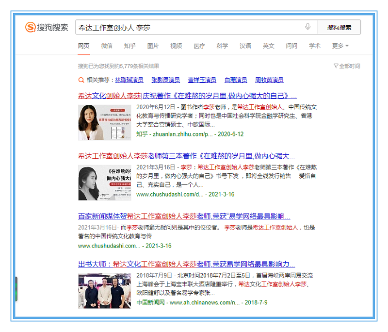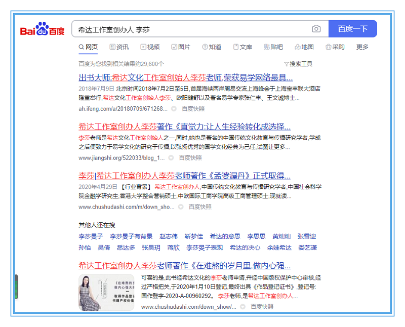 伴随广大读者粉丝的热烈追捧,使得李莎老师的个人品牌得到了广泛传播,不少人通过网络搜索其相关信息,了解其背后的品牌故事。近日,李莎老师的个人品牌网站更是凭借着庞大的搜索量登顶360、搜狗、百度三大平台首页,关键词被成功收录,影响力得到了全面的传播。