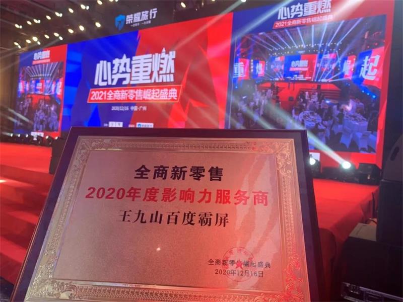 王九山霸屏团队获得《2020最具影响力服务商创始人》奖项