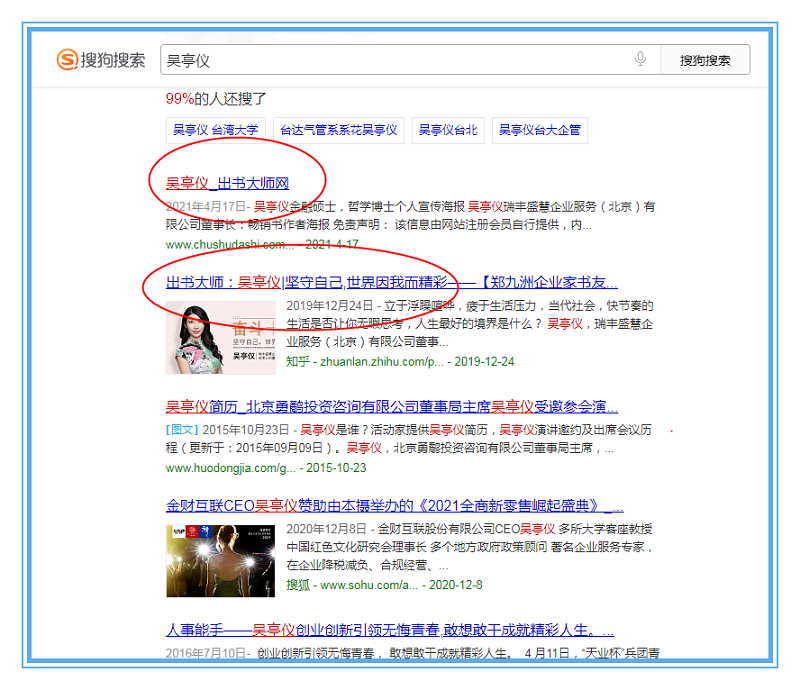 凭借着出色的品牌运营和品牌推广,吴亭仪老师的个人影响力得以全面覆盖,其个人品牌网站更是被360、搜狗、百度三大平台成功收录,形成了专属于自己的个人流量IP。