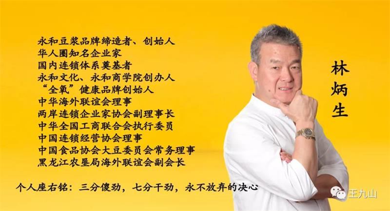 林炳生,是永和豆浆的掌门人,1982年在宝岛台湾开始开店,1985年正式取得了“永和豆浆”商标注册,1992年在大陆注册,1995年永和食品公司跨过中国台湾海峡,走进故土发展,总部设立于上海。现全国有近600家“永和豆浆”餐饮门店,其足迹可谓是遍布中国大江南北,在北京、上海、深圳、武汉、南京、成都、济南等大城市,“永和豆浆”早已成为了人们生活中的一部分。