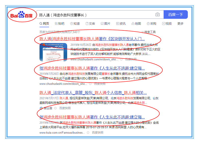 近日,鸿途永胜科技董事长陈人通个人品牌网站被360、搜狗、百度三大平台收录,现在只要在中文搜索引擎360、搜狗、百度输入“鸿途永胜科技董事长 陈人通”相关关键词,便能够看到陈人通老师的诸多信息,包括个人简介、著作、品牌故事。这充分说明陈人通老师的个人影响力之强,从而进一步增强其社会美誉度,引发社会公众更为广泛的关注和认可。