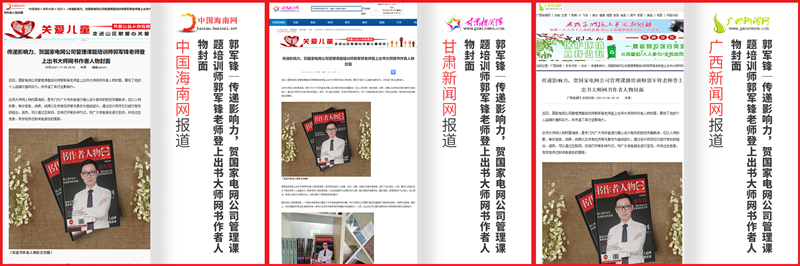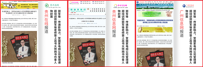 近日,国家电网公司管理课题培训师郭军锋老师登上出书大师网书作者人物封面,展现了他的个人品牌价值和实力,并传递了其行业影响力。