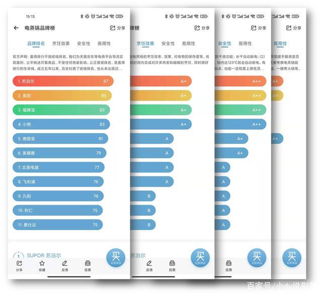 值得敬佩。确实,公信力,是排行榜的生命线。如果你愿意相信盖得没有说谎(这个说谎的成本实在太高,因为如果真的“收钱卖榜”,竞争对手一定会举报),那么,你会买什么牌子的电蒸锅呢?