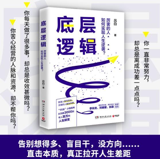 吕白在他所著的这本《底层逻辑》中,总结了自己多年来的成长经验:人生逆袭的五个核心算法、突破阶层的四个关键、向上进阶的三大思维以及锚定未来的四大策略,从个人成长、社交关系、职场进阶多个维度给到切实的底层逻辑。有读者读后评论称,“不是懂很多道理依旧过不好一生,而是不懂核心的人生底层逻辑,跟着吕白学习,自己看到了成长逆袭的希望。”