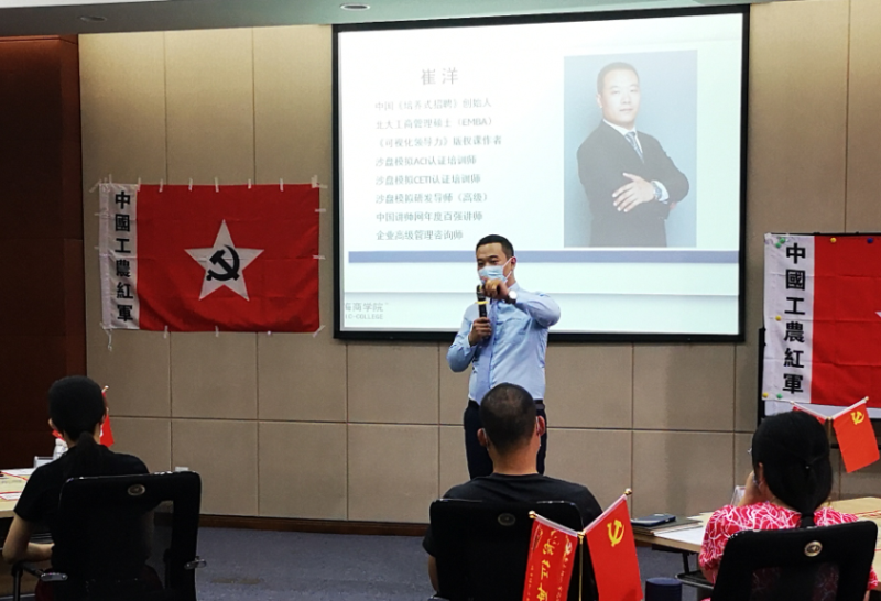 为弘扬长征精神,继承优秀革命传统,8月1日,在中国人民解放军建军93周年之际,中国沙盘模拟战略发展中心与诺亚大学共同举办八一建军节特别课程:“长征再现”高端情景沙盘。课程由模拟沙盘研发导师崔洋主讲。