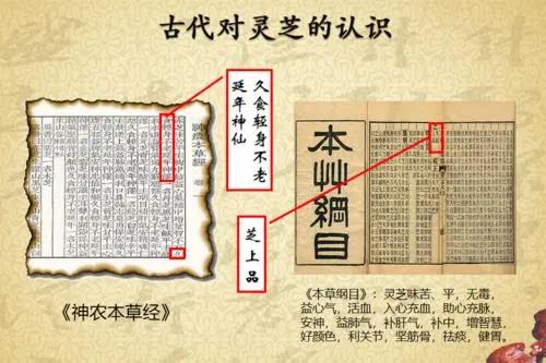 《本草纲目》记载灵芝久食轻身不老、延年,《神农本草经》记载灵芝有益心气,益肺气、益脾气、补肝气、益肾气、好颜色等功效。