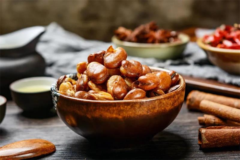 新鲜蚕豆20克,醋5克,白糖10克,胡椒、花椒各4粒,生姜3片,大蒜1~2瓣(切碎)。先在炒锅内放入花生油少许,待油热后放入花椒、胡椒、姜、蒜煸炒出香味,加入蚕豆、醋、糖翻炒几下即可。用此酱佐餐,有开胃止痛之功,适合胃溃疡、慢性胃炎伴有胃痛、胃寒、肢冷者;可间断服用,待胃痛、腹胀等缓解即停用。