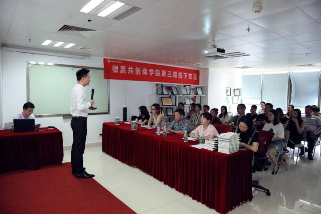 5月20日下午14点,由微赢共创商学院、微商精英汇联盟主办组织的第三期线下分享交流会在龙华展滔科技微赢共创商学院举办,参加此次交流会的有微商落地辅导第一人、微赢共创商学院院长杨赵进老师,微商操盘手、微赢共创创始人、百新谷网络CEO徐公子(徐育渊)及各个微商团队长、微商初创小白和传统企业转型微电商老板等人,本次分享交流会以《2018如何玩转本地化微商》为题,所有参会人员不仅学到价值几万的课程,还结交很多正能量的高端人脉资源,边学习边链接,在这个经济分享的时代,微商结合线下实体店并落地化,用互联思维和社群营销,激活现有的线下流量并获取,达到最高效便捷的经济分享。