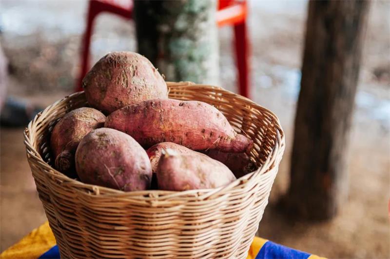 甘薯 甘薯含大量黏蛋白,维生素C也很丰富,维生素A原含量接近于胡萝卜的含量。常吃甘薯能降胆固醇,减少皮下脂肪,补虚乏,益气力,健脾胃,益肾阳,从而有助于护肤美容。