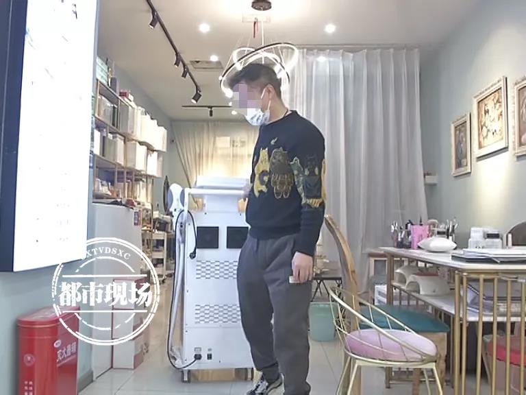 这名男子走后,“科瑞斯美肤抗衰中心”又来了一名男子,他又将店内的一台大型仪器移走了。