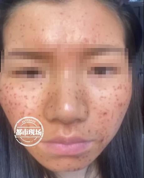 祛斑治疗结束后,店主周业成又给了郭女士一些修复产品带回家使用,原本郭女士以为自己真的可以变美,可是结果不尽如人意。她给记者出示的一张照片显示,原本还算白净的脸,到处都是结痂的斑斑点点。2021年12月16日,郭女士在南昌大学第二附属医院皮肤科问诊,经诊断,她的面部皮肤存在炎症后色素沉着。
