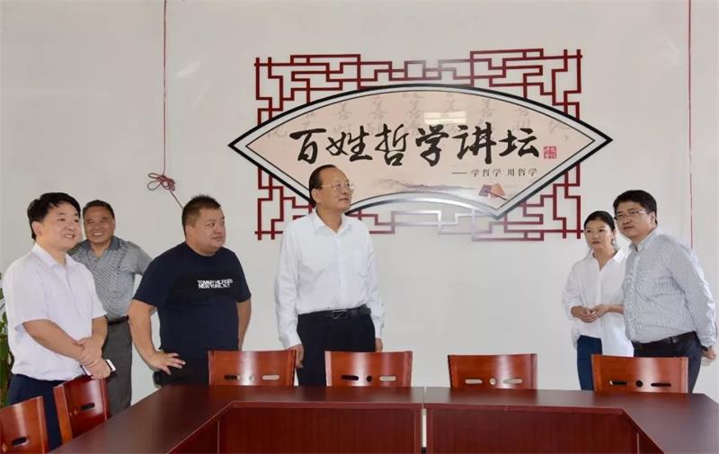 王立胜一行先后来到紫港街道紫港社区哲学馆、辉埠镇彭川村乡贤馆和哲学苑、常山江“宋诗长廊”、中国观赏石博览馆、赛得健康小镇等地,通过听介绍、看现场、互动交流等方式,详细了解我县“学哲学用哲学”等工作的开展情况。