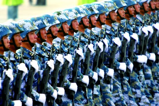 2009年10月1日,首都各界庆祝中华人民共和国成立60周年大会在北京举行。图为海军陆战队方阵在做阅兵准备。