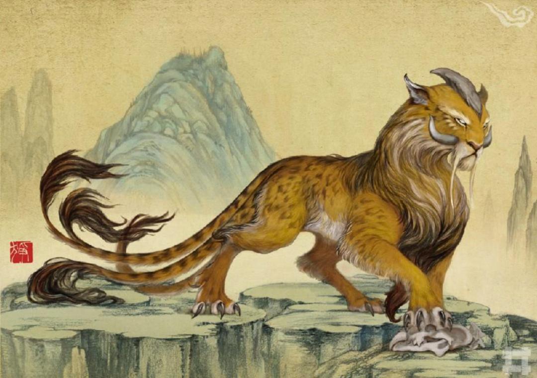 章莪之山有兽焉,其状如赤豹,五尾一角,其音如击石,其名如“狰”。图自《山海兽》(十驎著,中信出版社,2017)