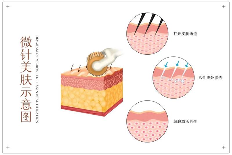 我们的皮肤本身是肌肤屏障,对于外来物质有抵抗作用。平时护肤贴面膜、涂抹乳液、精华、面霜时,护肤成分只能停留在表层。护肤品的营养物质不是被蒸发了就是因为个头太大根本进不了真皮层,自然效果也不明显。微针能够快速打开中胚层20万+的管道,促进微循环。护肤精华活性成分渗透,皮肤充分吸收足够的营养。综上所述,微针就是打开皮肤中胚层20+的细胞通道,让营养物质直接被深层吸收,实现有效护肤。