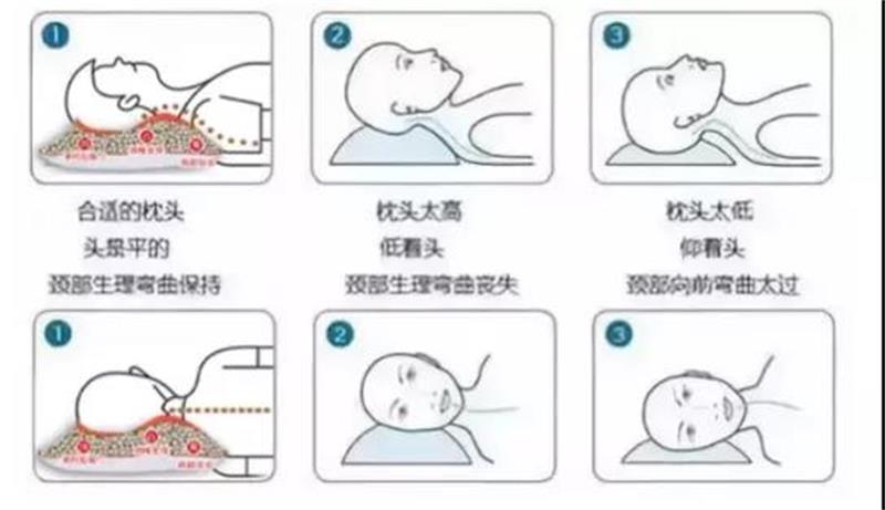 枕头不要太高。长期枕高容易导致我们的颈椎变形,还会出现脑部供血不足等症状。平躺时,将枕头放在颈部,因为颈椎病患者的生理曲度变直,椎间隙变窄,所以枕到颈部有利于恢复。侧卧时,要选择有衬托力的枕头,用枕头缓冲头肩的高度差。