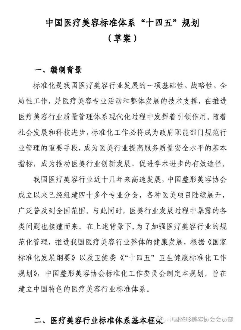 《中国医疗美容标准体系建设“十四五”规划》(草案)全文如下: