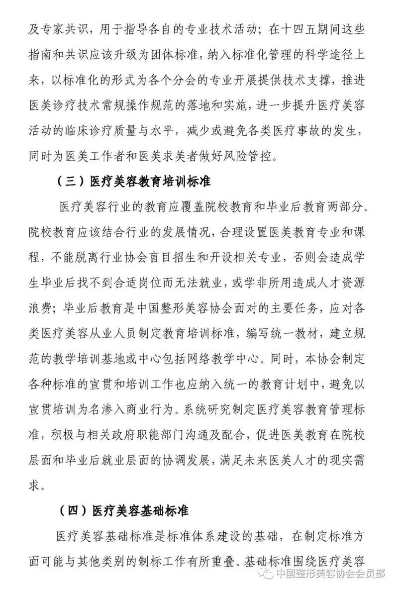 1月30日,中国整形美容协会公布《中国医疗美容标准体系建设“十四五”规划》(草案),内容包括行业管理标准、行业技术标准、教育培训标准、行业基础标准等四个方面近50个标准。协会通知,希望行业同仁对草案进行审阅!