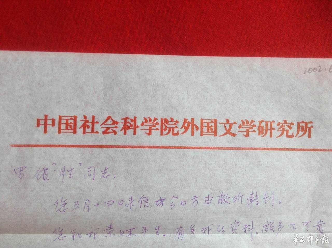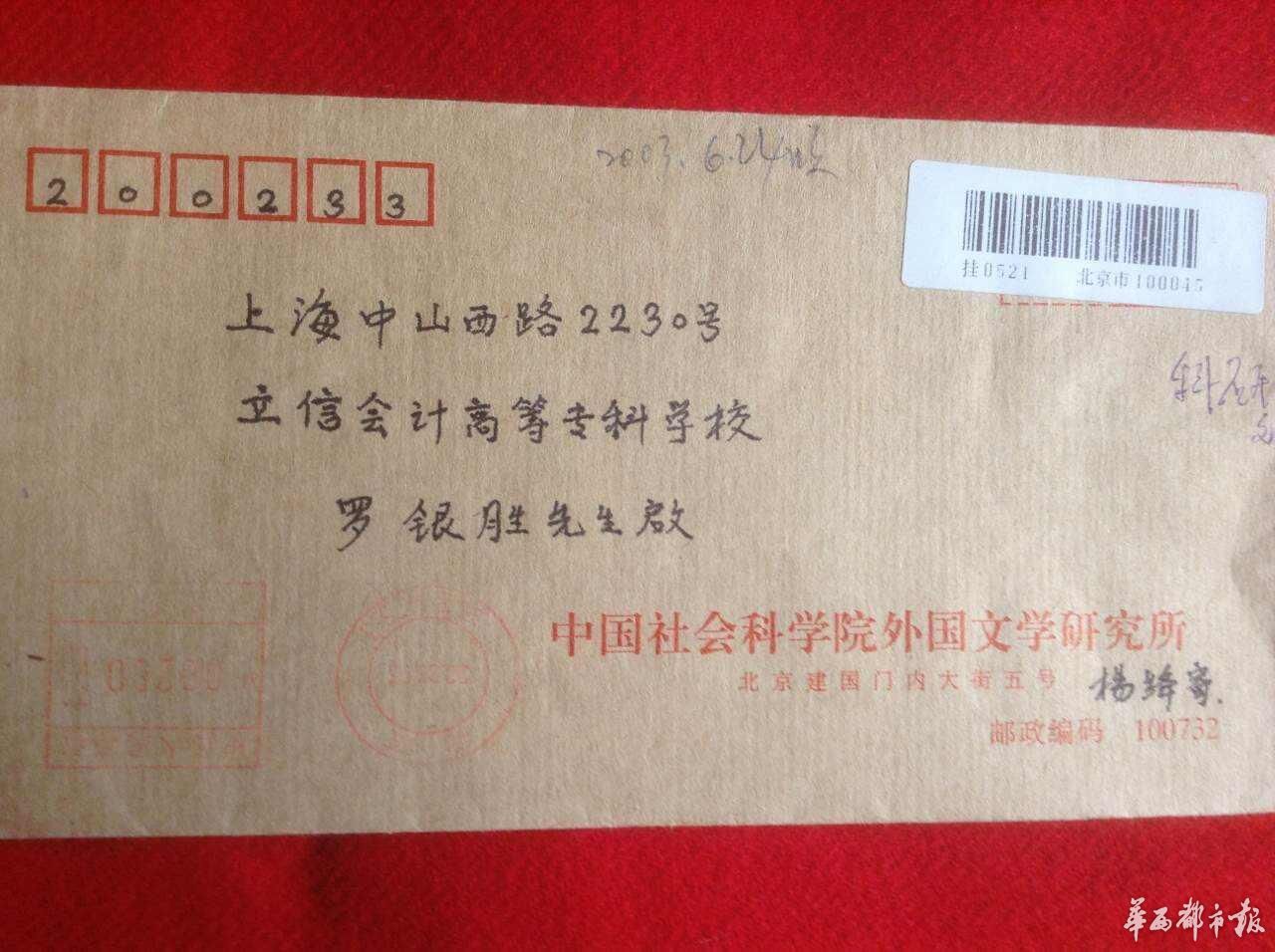 杨绛写给罗银胜的信。
