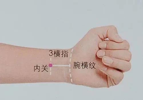 仰掌,手腕往手肘的方向约三横指(约2寸)的距离处,在中间二骨两筋之间。胃胀或者有吃东西好像梗在胸口下不到胃部去的感觉,拍一拍此穴,气机调畅就通了。