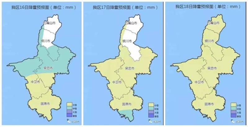 另据银川市气象台预报,预计未来一周,以多云天气为主。2月18日受一股冷空气影响,全银川有小雪,伴有4到5级偏北风,阵风7到8级。18日到19日平均气温较16日下降6度左右,最高气温16日到17日升至6度。19日到23日降至0度左右,最低气温18日在零下7度左右,19日到23日在零下9度左右。